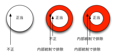 一番左が、内部統制を行う前の状態です。 円の内部は裁量の範囲を表しています。